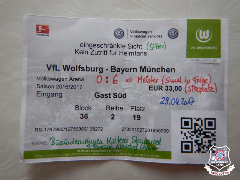 Buidl vo unsere Fahrten - 29.04.2017: VfL Wolfsburg - FC Bayern 0:6 (Bundesliga Auswärts)