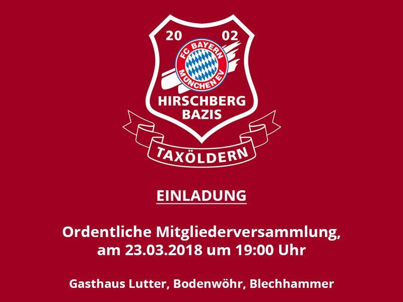 Offizielle Einladung Ordentliche Mitgliederversammlung am Samstag, 23.03.2018 19:00 Uhr